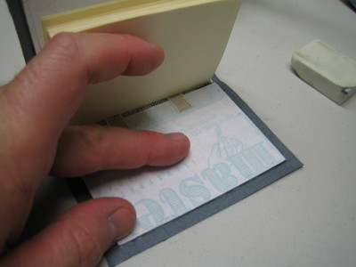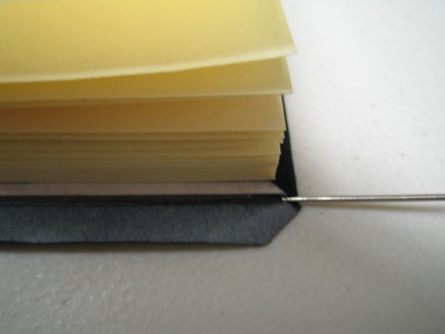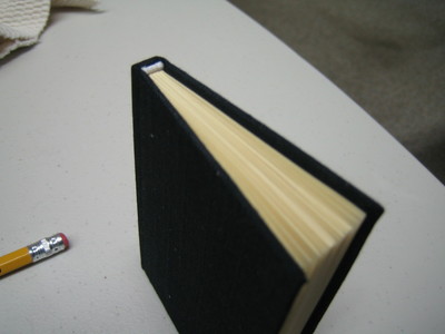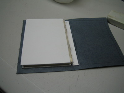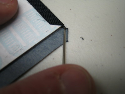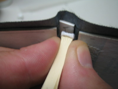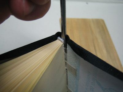 I use a small clean screwdriver to press the cloth into place inside the spine.