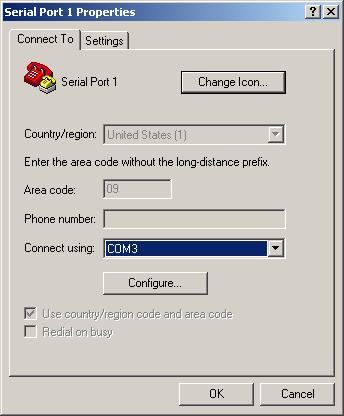 The first time you run Hyperterminal, it will probably pester you for a phone number. Just enter a zero and continue.
