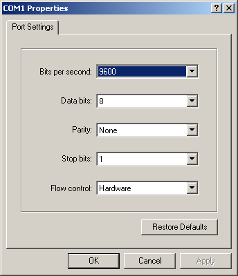 Most of the settings shown above are correct for all the Motorola phones I've tried. The only value you will need to change is the baud rate on the "Bits per second" menu. It will be 19200 for serial cable connections and USB connections with older phones. Most newer phones with USB or Bluetooth will need 115200 baud.