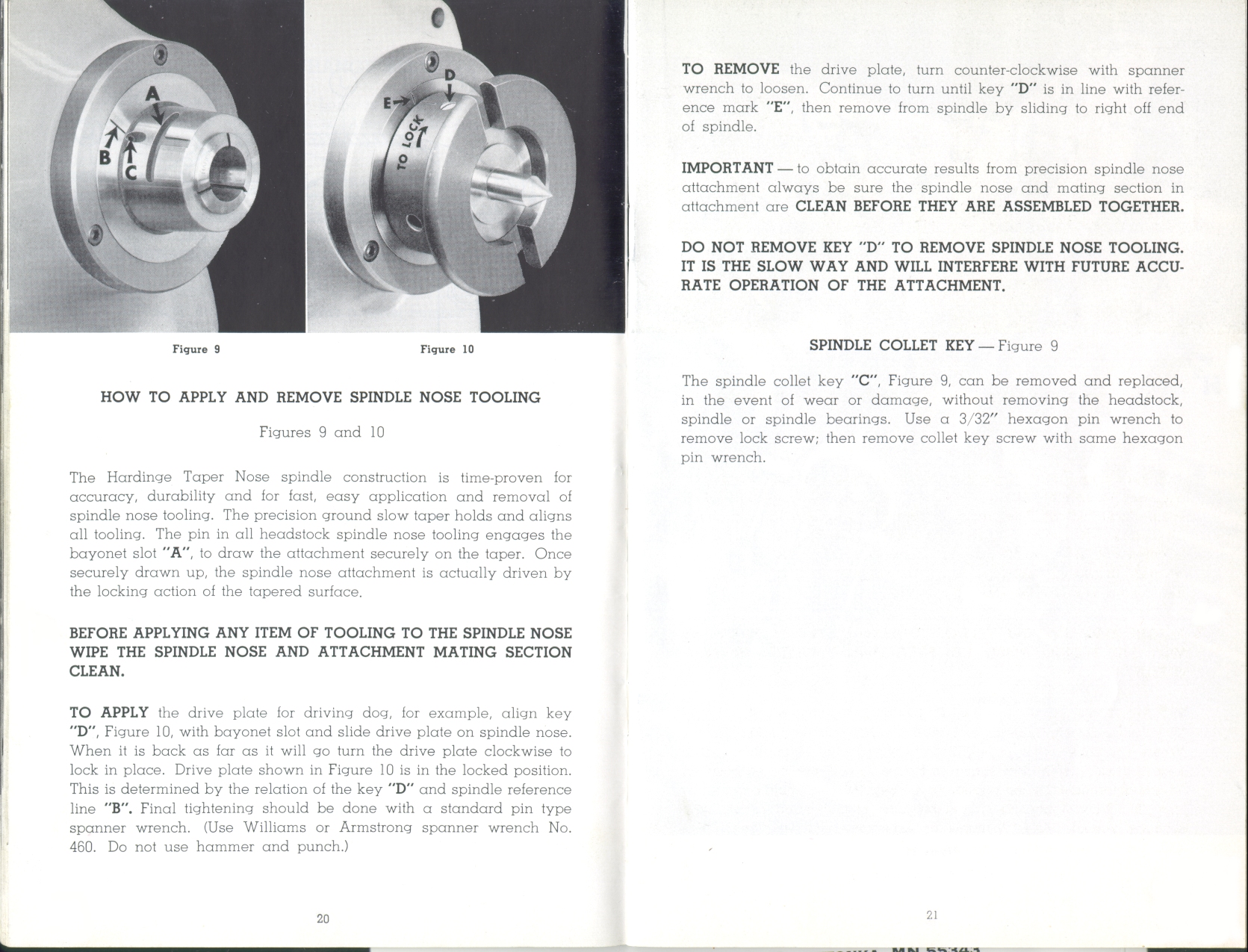 Page 20-21: How to apply and remove spindle nose tooling