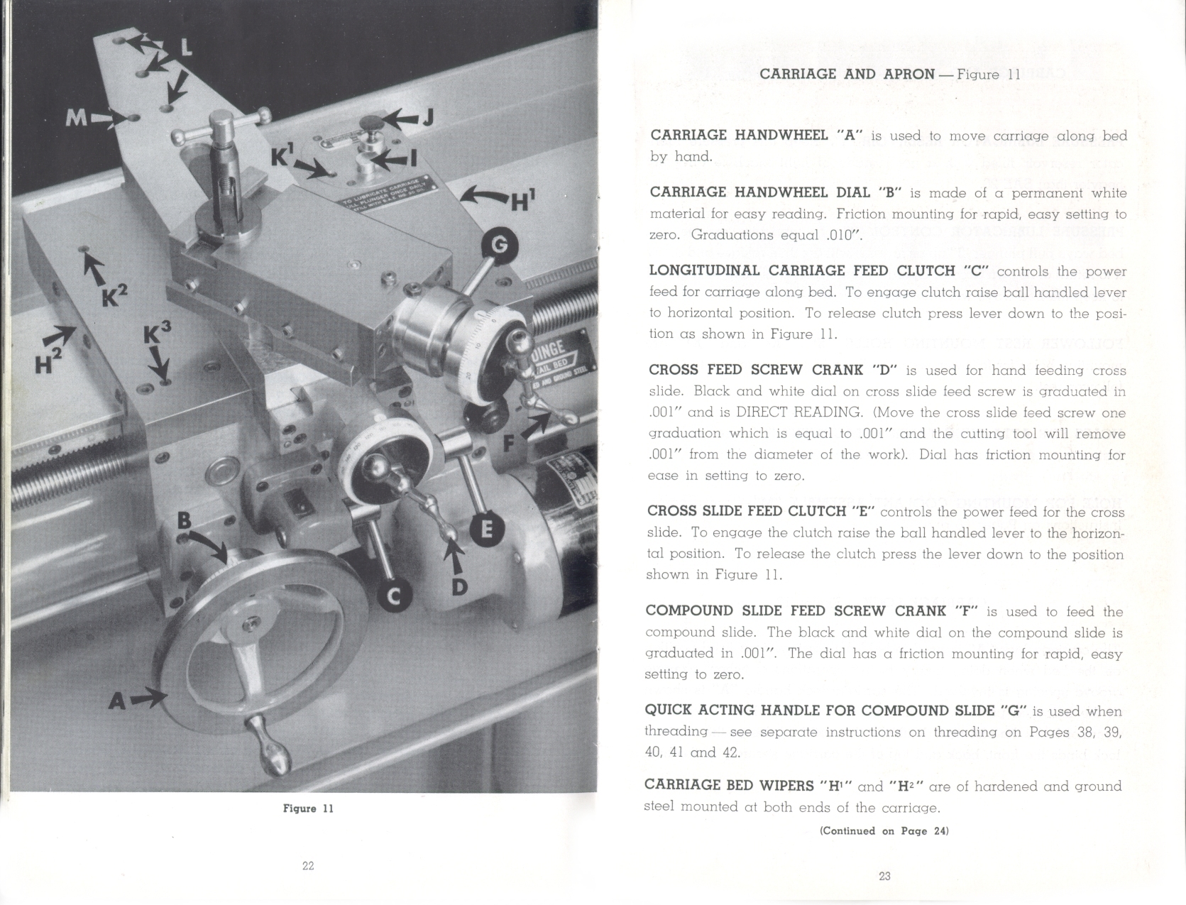 Page 22-23: Carriage and apron controls