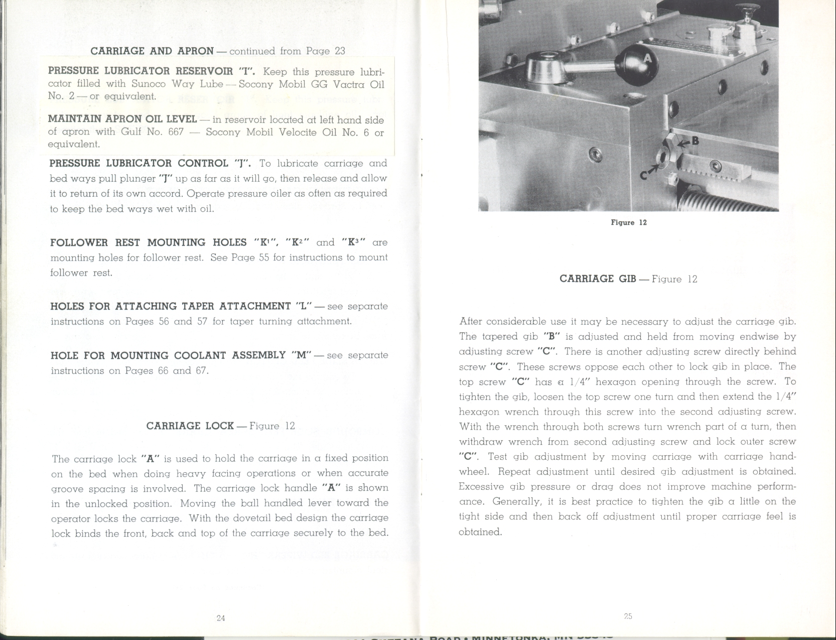 Page 24-25: More carriage controls, How to adjust carriage gib