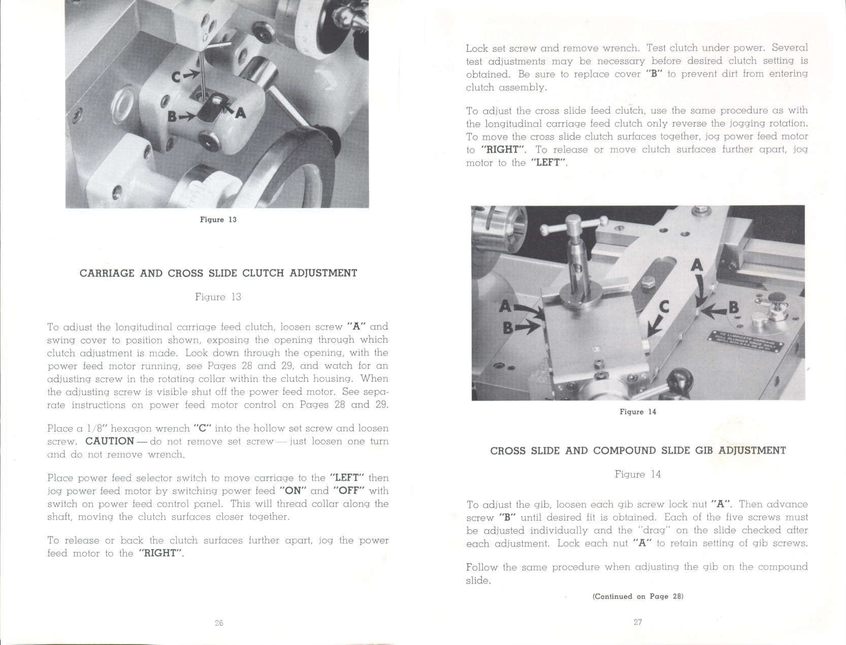 Page 26-27: Carriage and cross slide clutch adjustment