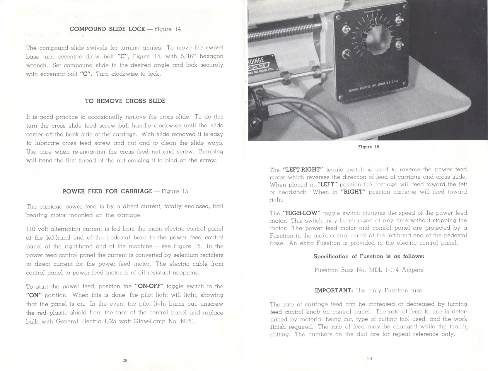 Page 28-29: Removing the crosslide, Power feed controls