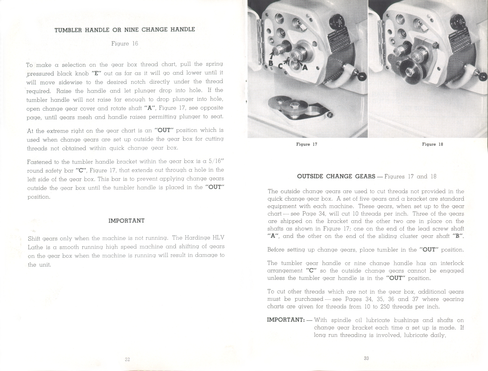 Page 32-33: Shifting gears, Outside change gears