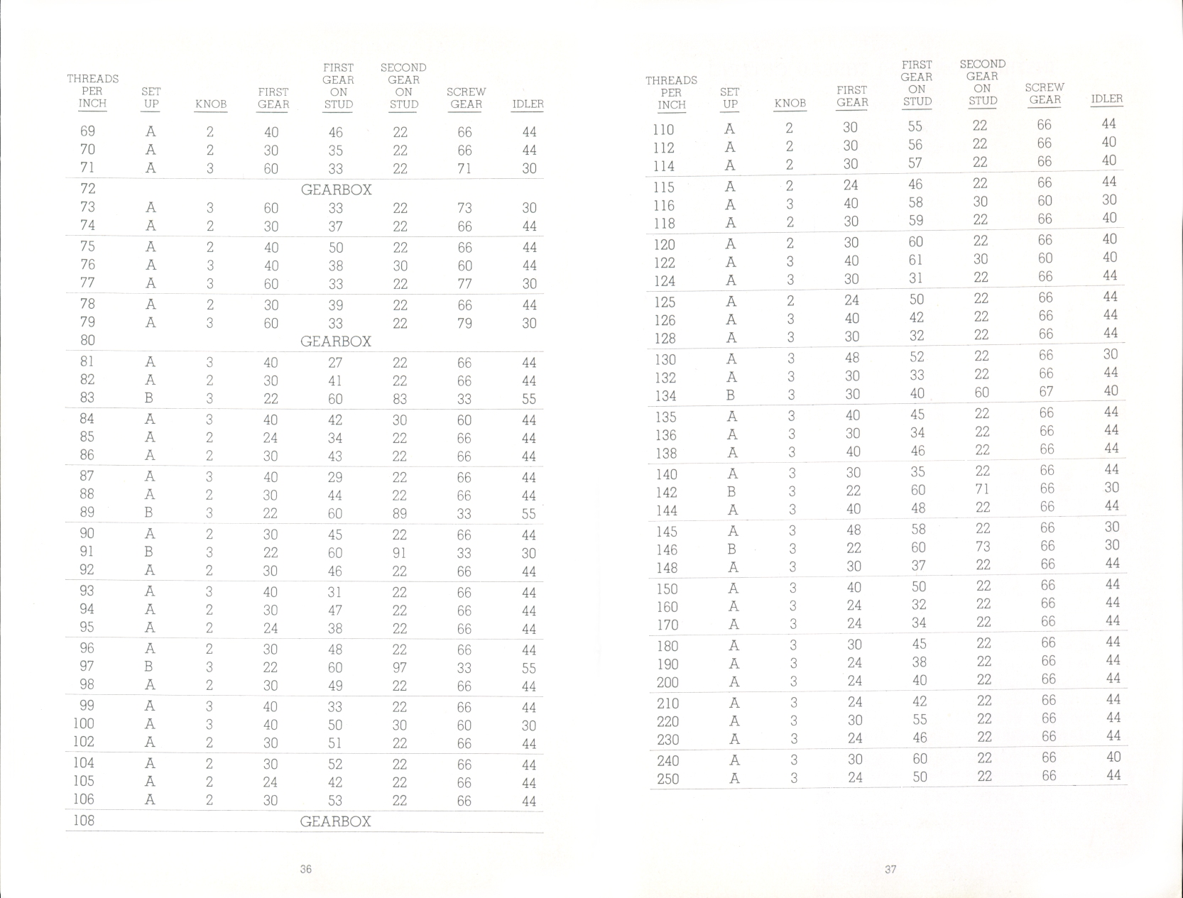 Page 36-37: Change gear chart 2