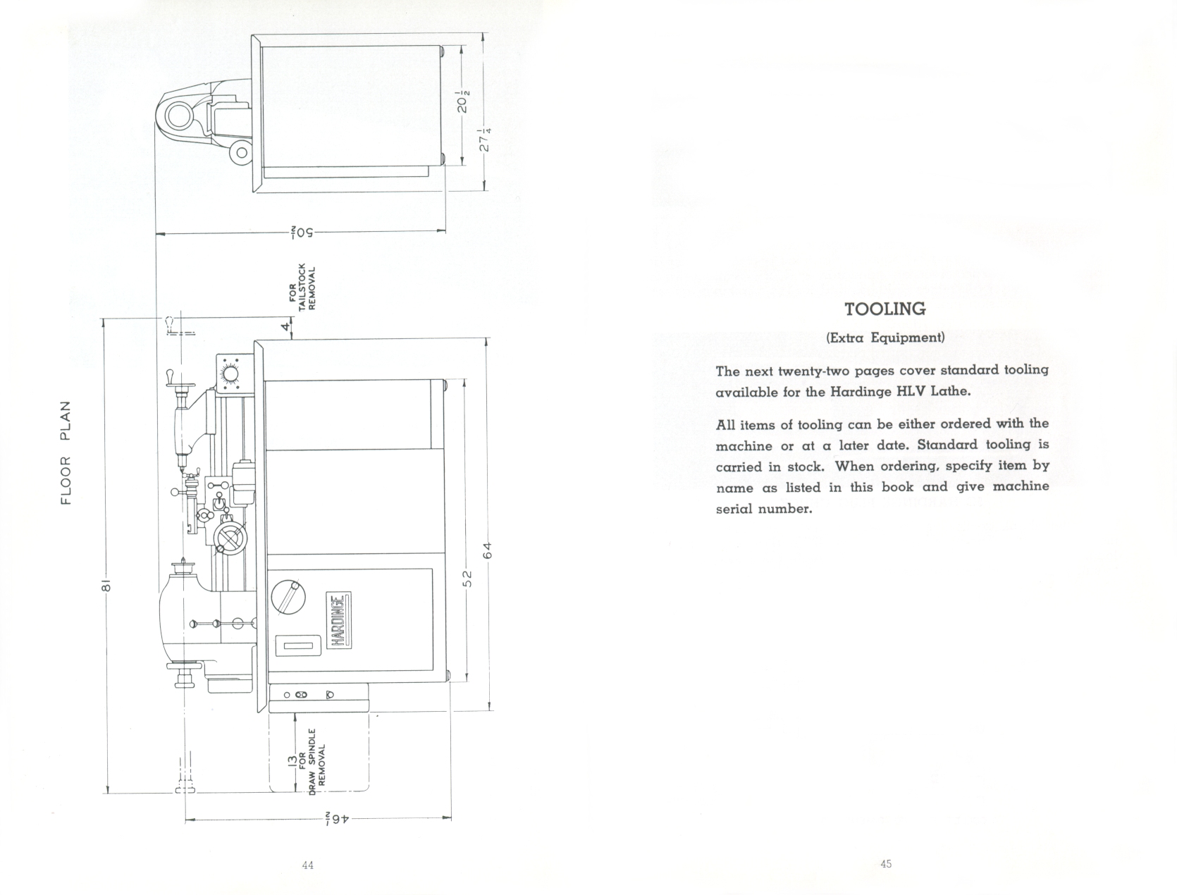 Page 44-45: Floor plan and dimensions, Tooling title page