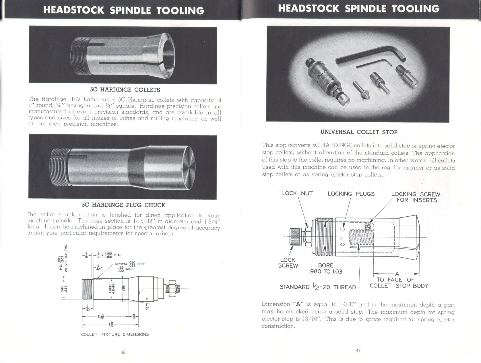Page 46-47: Collets, plug chuck, collet stop