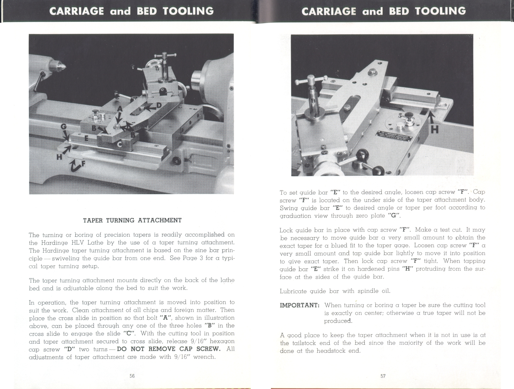 Page 56-57: Taper attachment