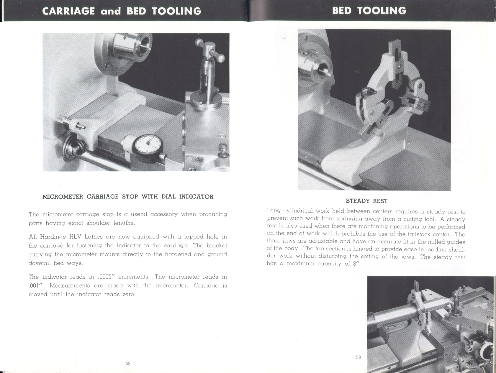 Page 58-59: Carriage stop, steady rest