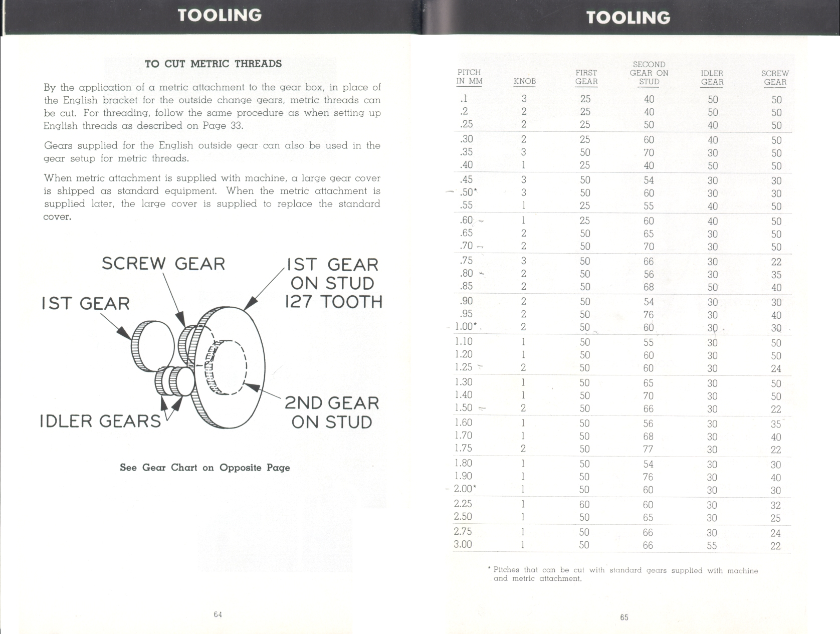Page 64-65: Cutting metric threads, Metric gear chart