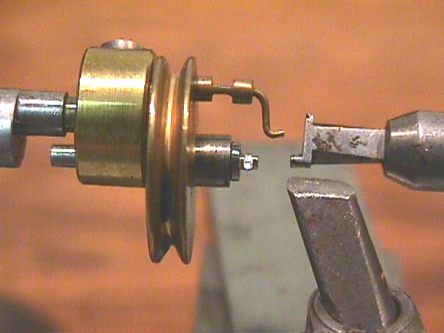 sticks out of the pulley engages a spoke on the watch wheel or a small