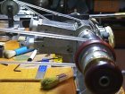 configured as a mandrill on the left and on the right, as a wax lathe.