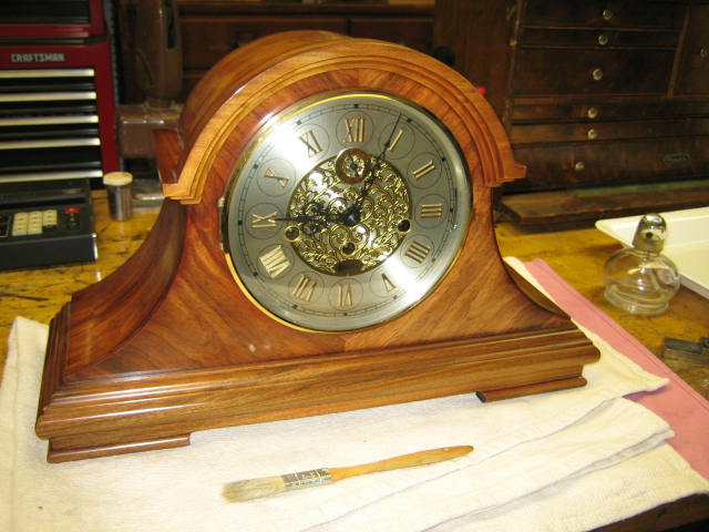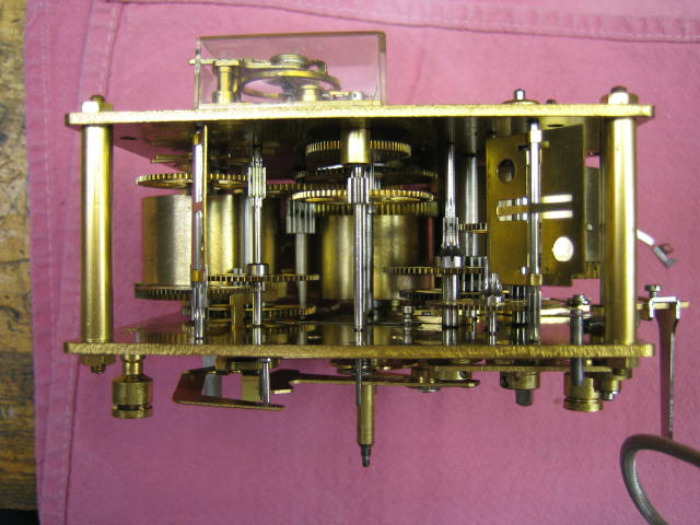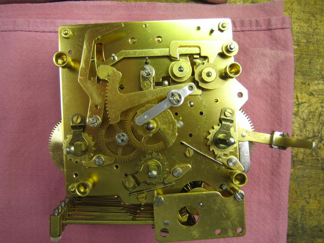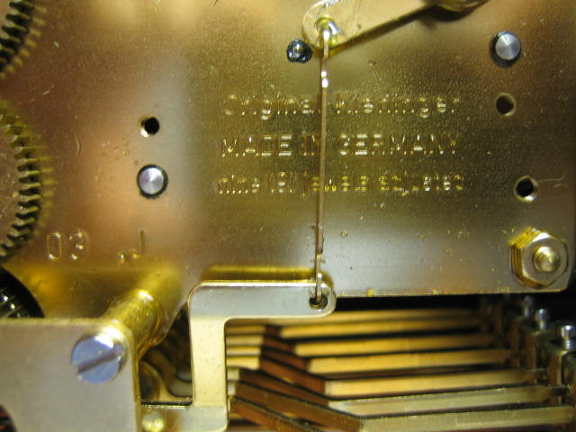 This clock belongs to a friend who generously broke one of the rachet springs so I could write this article. It has a nice Kieninger "J" movement.