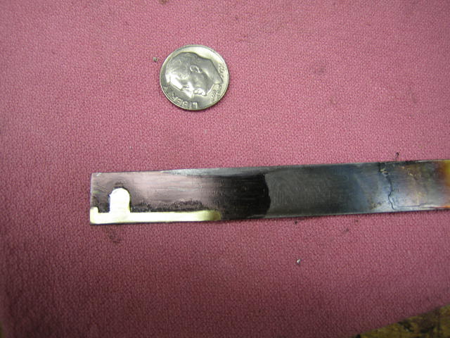 Smith also suggests soft-soldering the original part to the flat stock. This method works very well, but in the example I present here, the orignal part was not flat until I beat on it with a big hammer. Then it was broken into so many pieces that I had to make a new template from scratch.