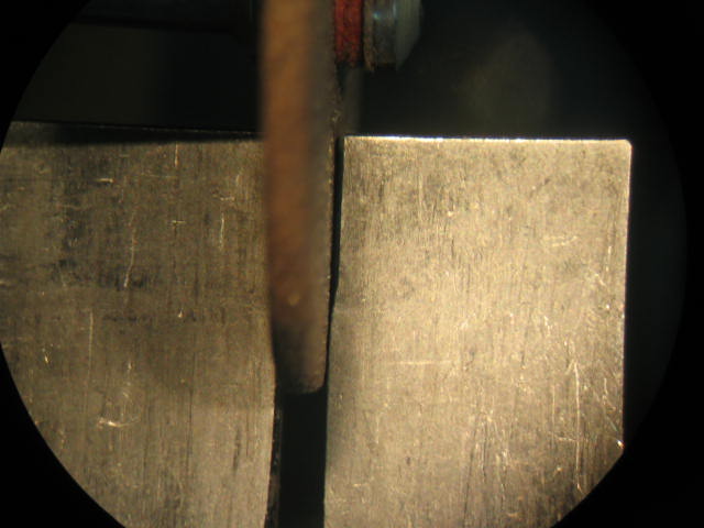 The lathe and microscope must be protected from the fine grinding dust. I put plastic kitchen wrap over the microscope objectives held in place with rubber bands. I do the same thing with the lathe headstock, leaving just a punched-through hole for the grinding arbor.(Not shown for clarity.)