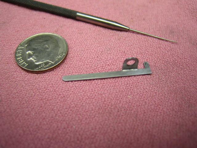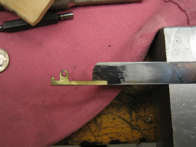 I clamp the broken original part to a thin sheet of brass shim stock. This can be roughed out with scissors and then rapidly filed to the final outline.
